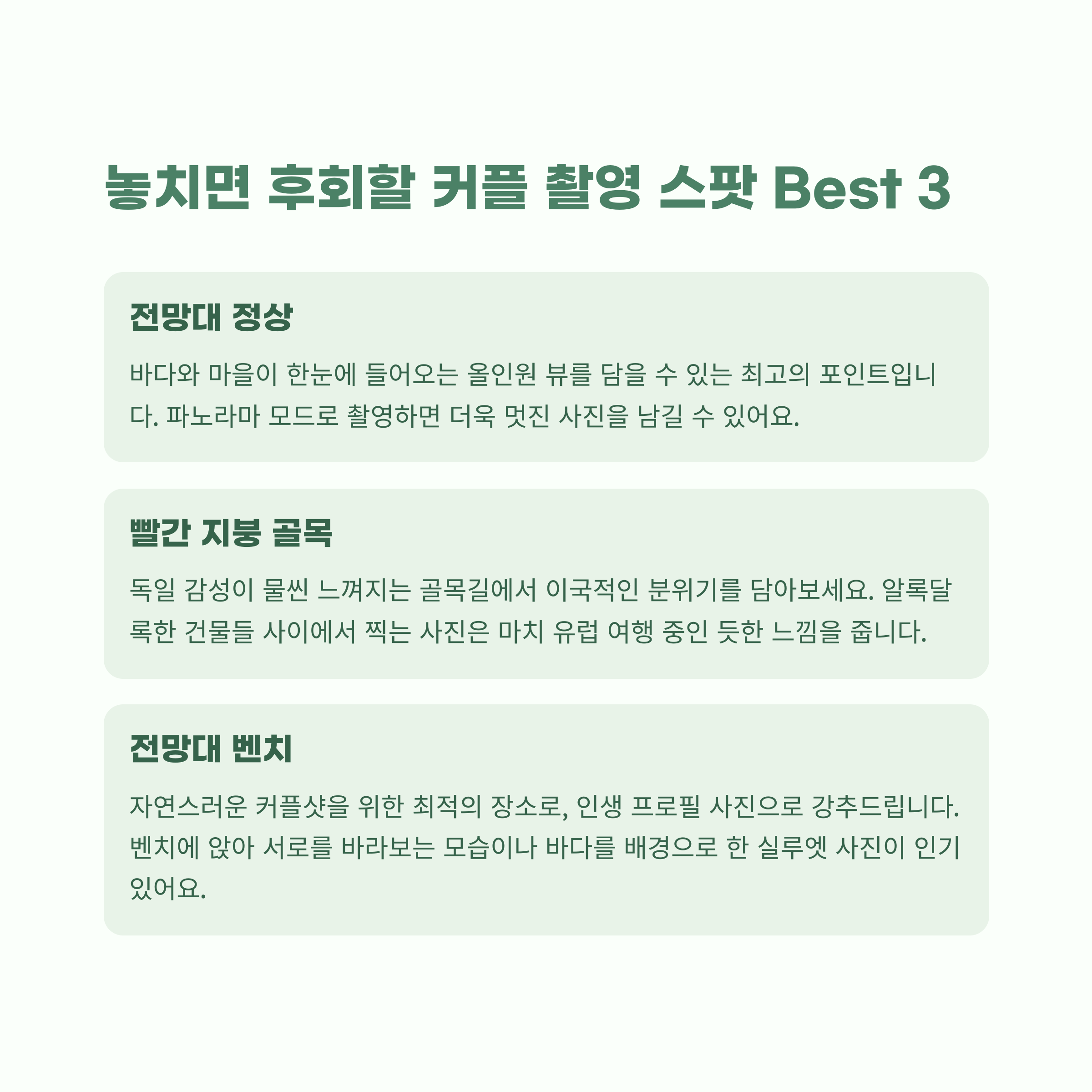 커플 촬영 스팟 Best 3: 놓치면 후회할 포인트