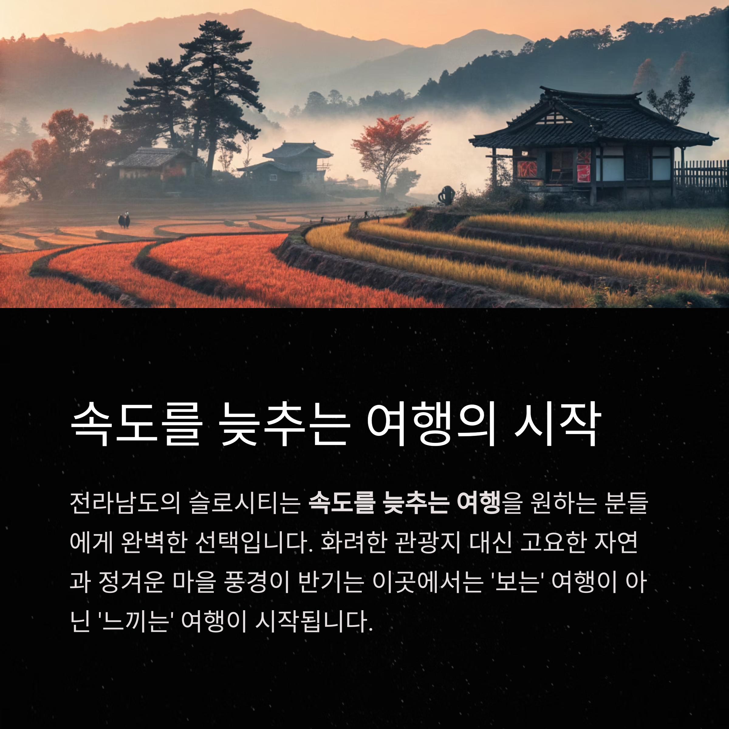 그중에서도 전라남도의 슬로시티는 속도를 늦추는 여행을 원하는 분들에게 완벽한 선택입니다.