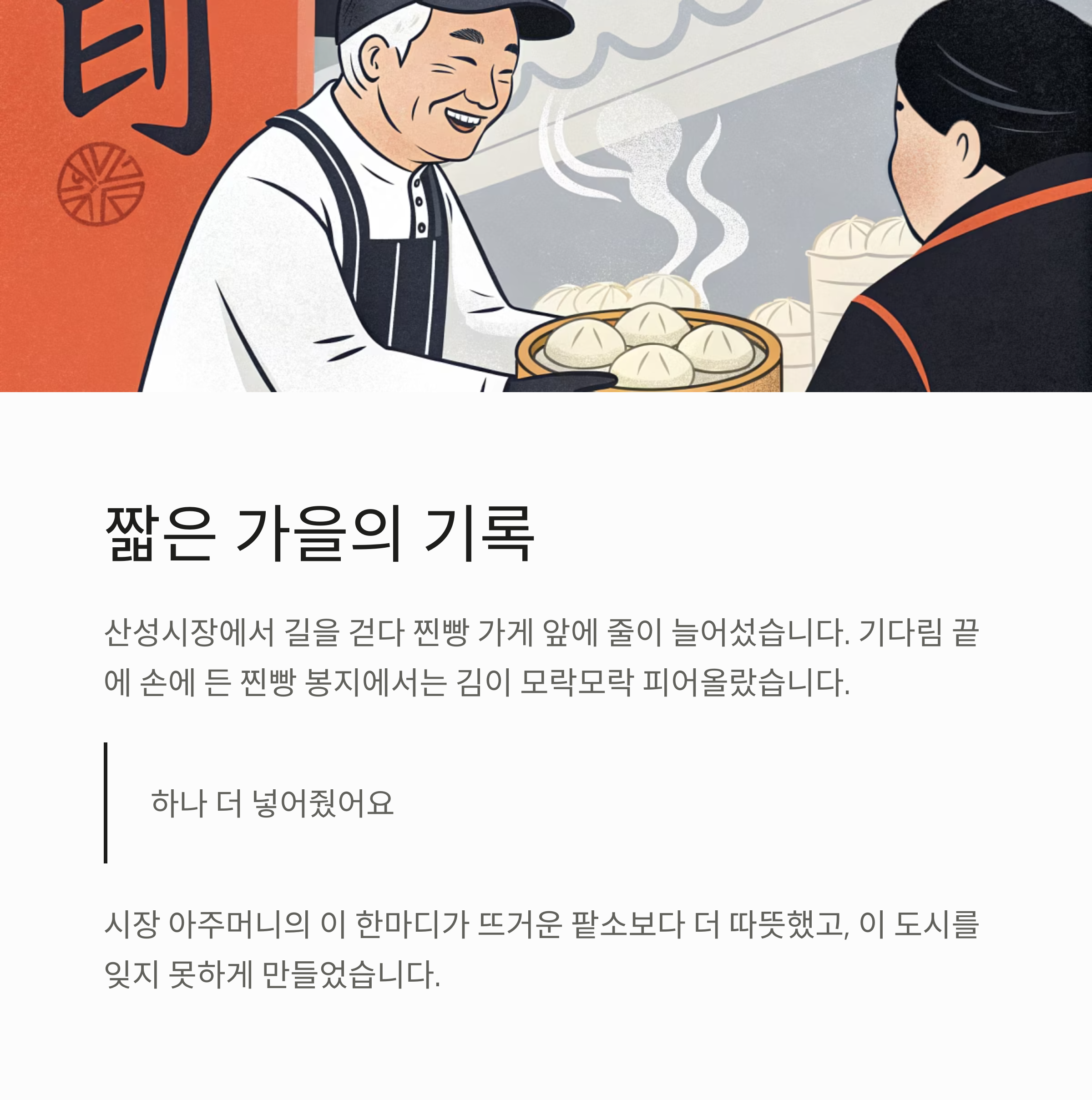 짧은 가을의 기록, 찐빵 한 봉지의 따뜻함