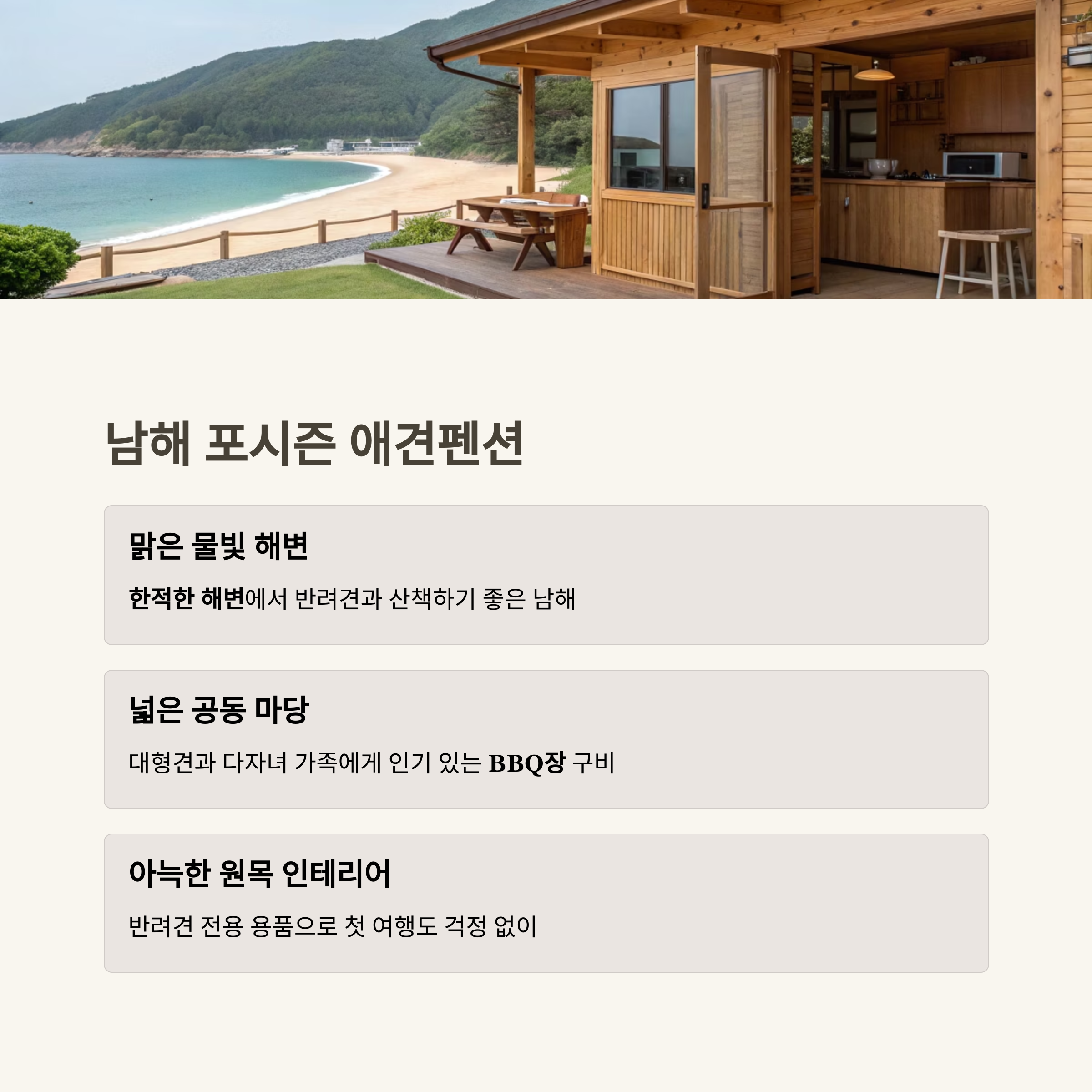 남해 상주해변, ‘포시즌 애견펜션’의 가족 맞춤형 구조