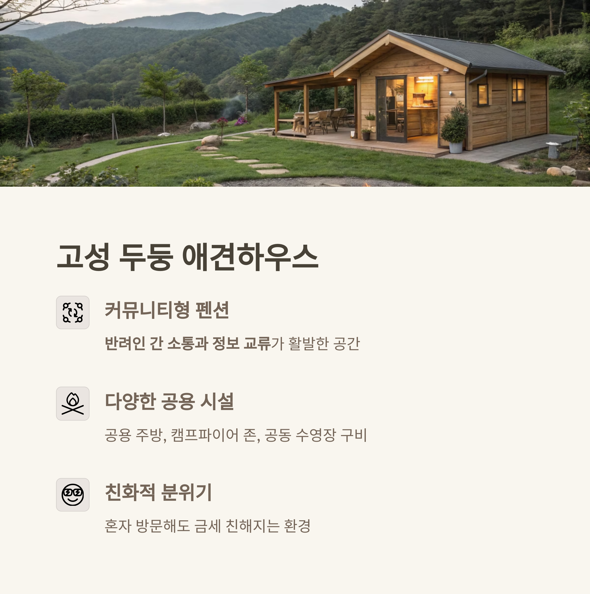 ‘두둥 애견하우스’는 공동 마당 중심의 커뮤니티형 펜션으로, 반려인 간 소통과 정보 교류도 활발한 공간입니다.