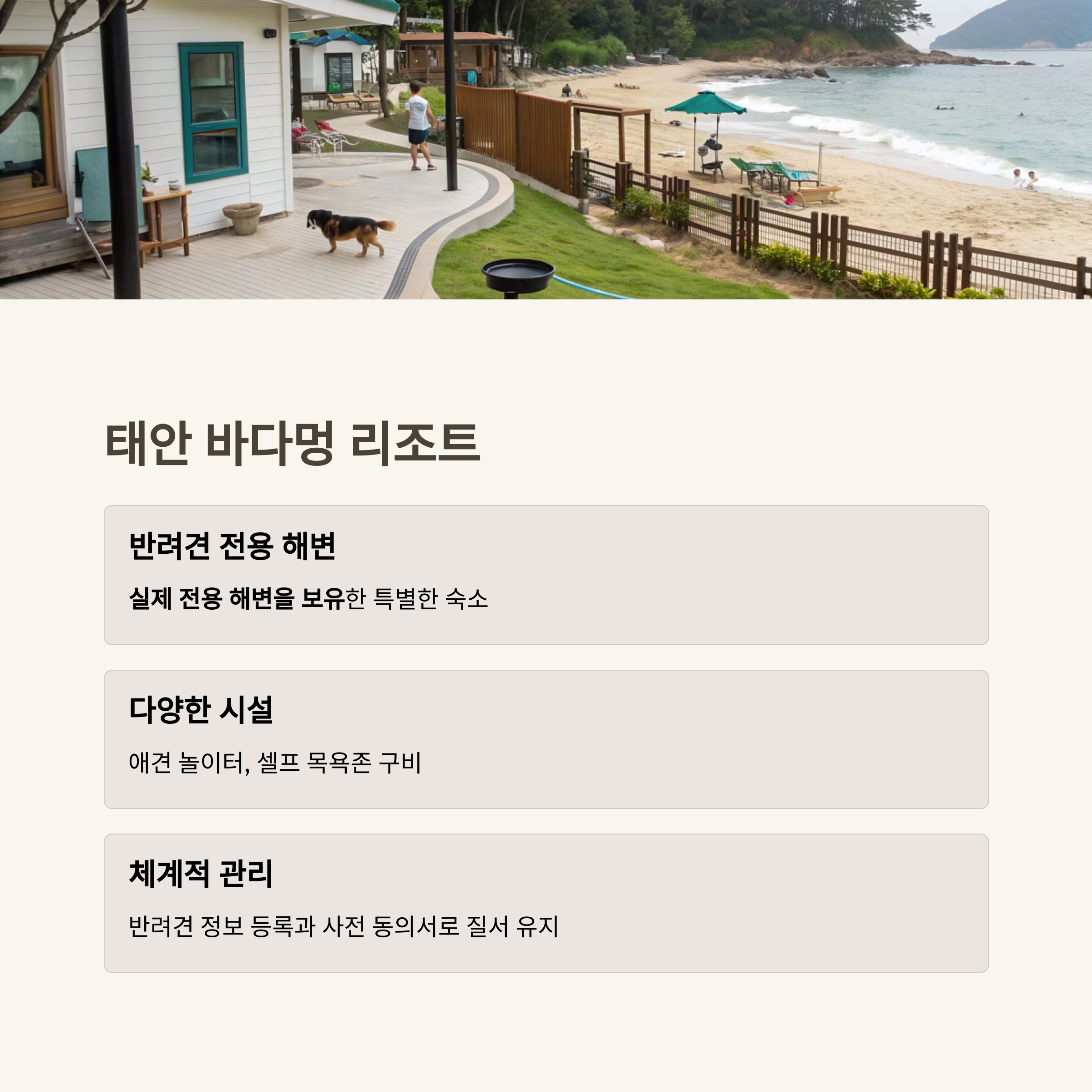 충청남도 태안의 몽산포해변 인근에 위치한 ‘바다멍 리조트’는 실제 반려견 전용 해변을 보유한 드문 숙소입니다.