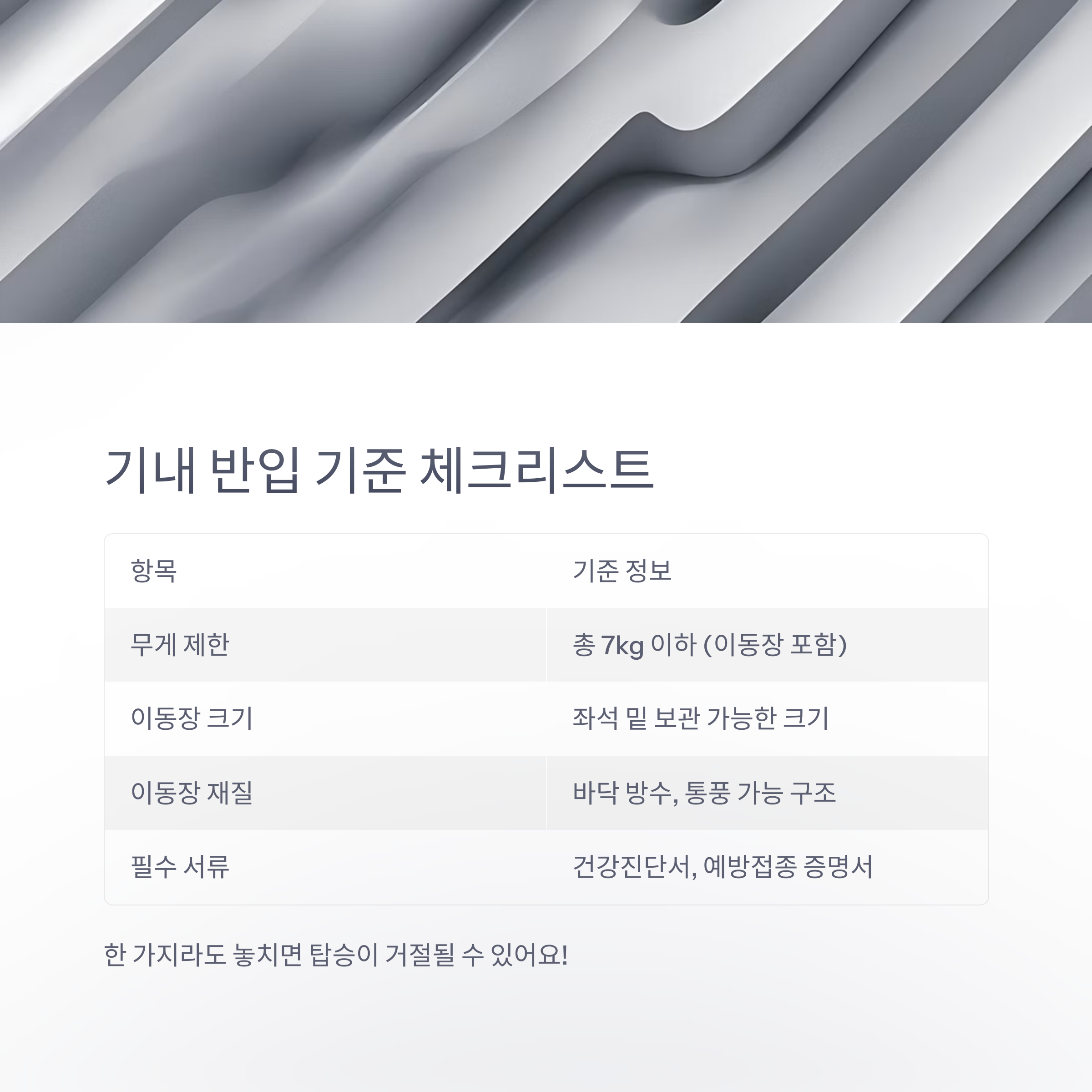 각 항공사마다 탑승 가능 조건이 다르고, 기내 반입 가능 여부, 건강 진단서, 이동장 크기 등