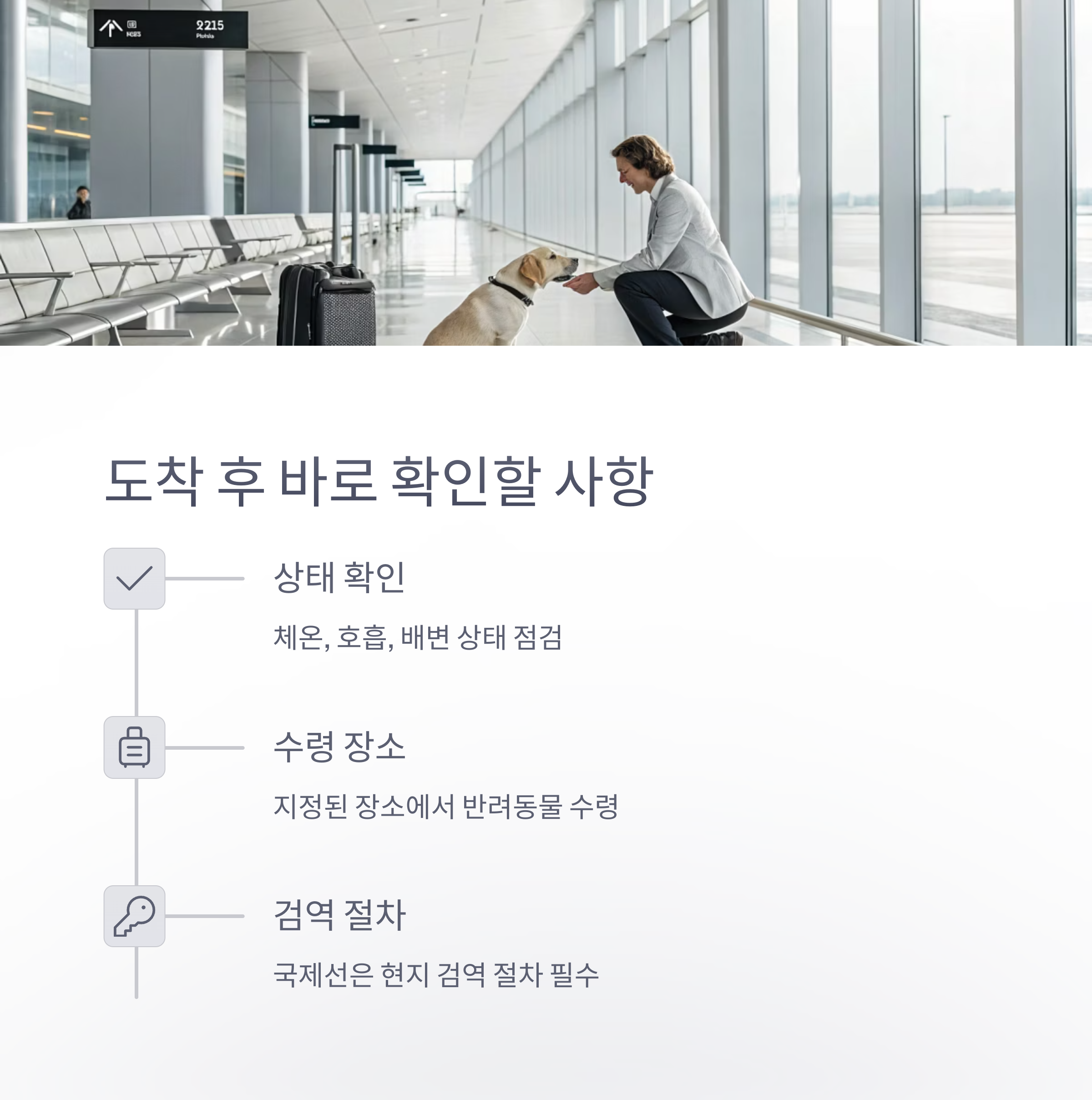 도착 직후 가장 먼저 해야 할 일은 반려동물의 상태 확인입니다.