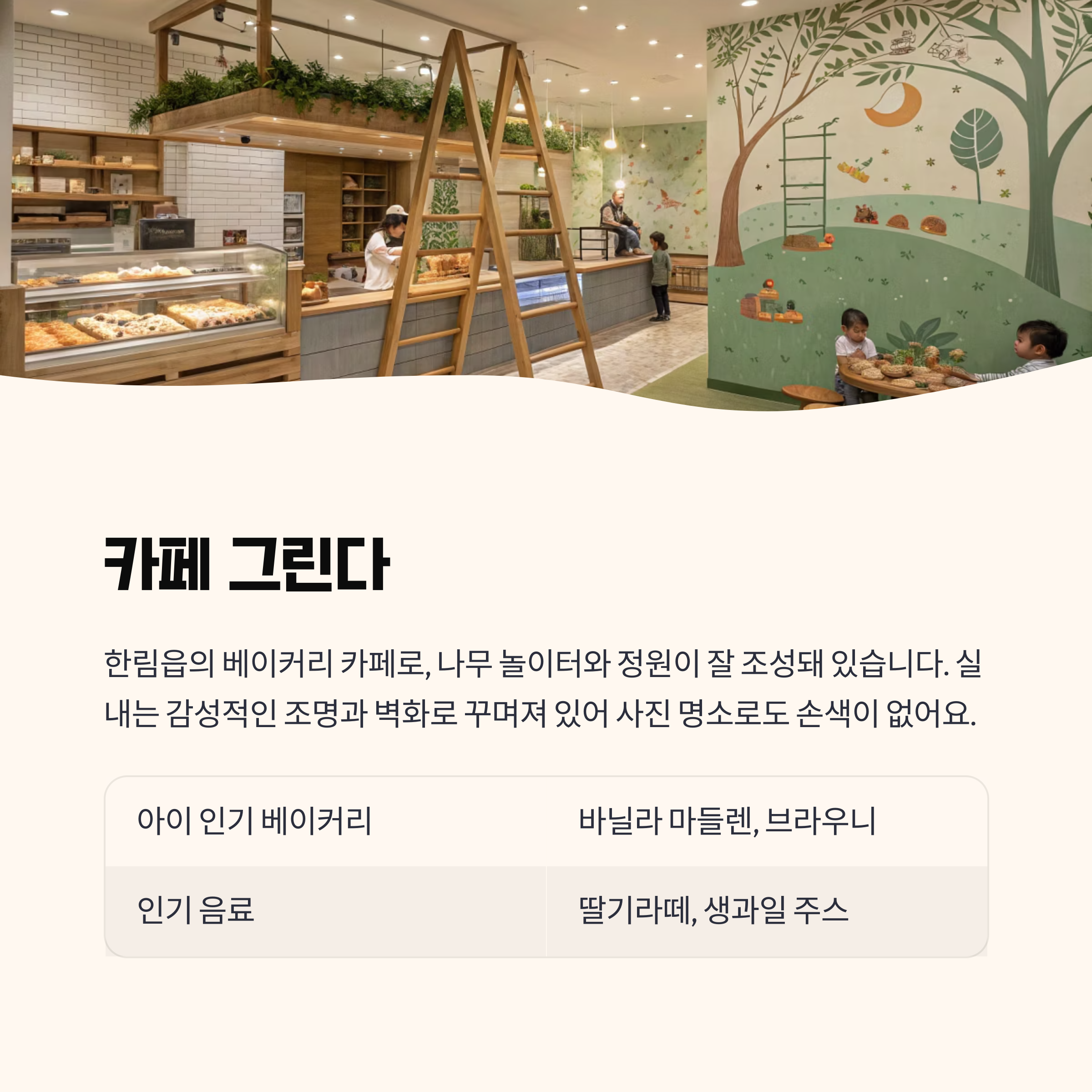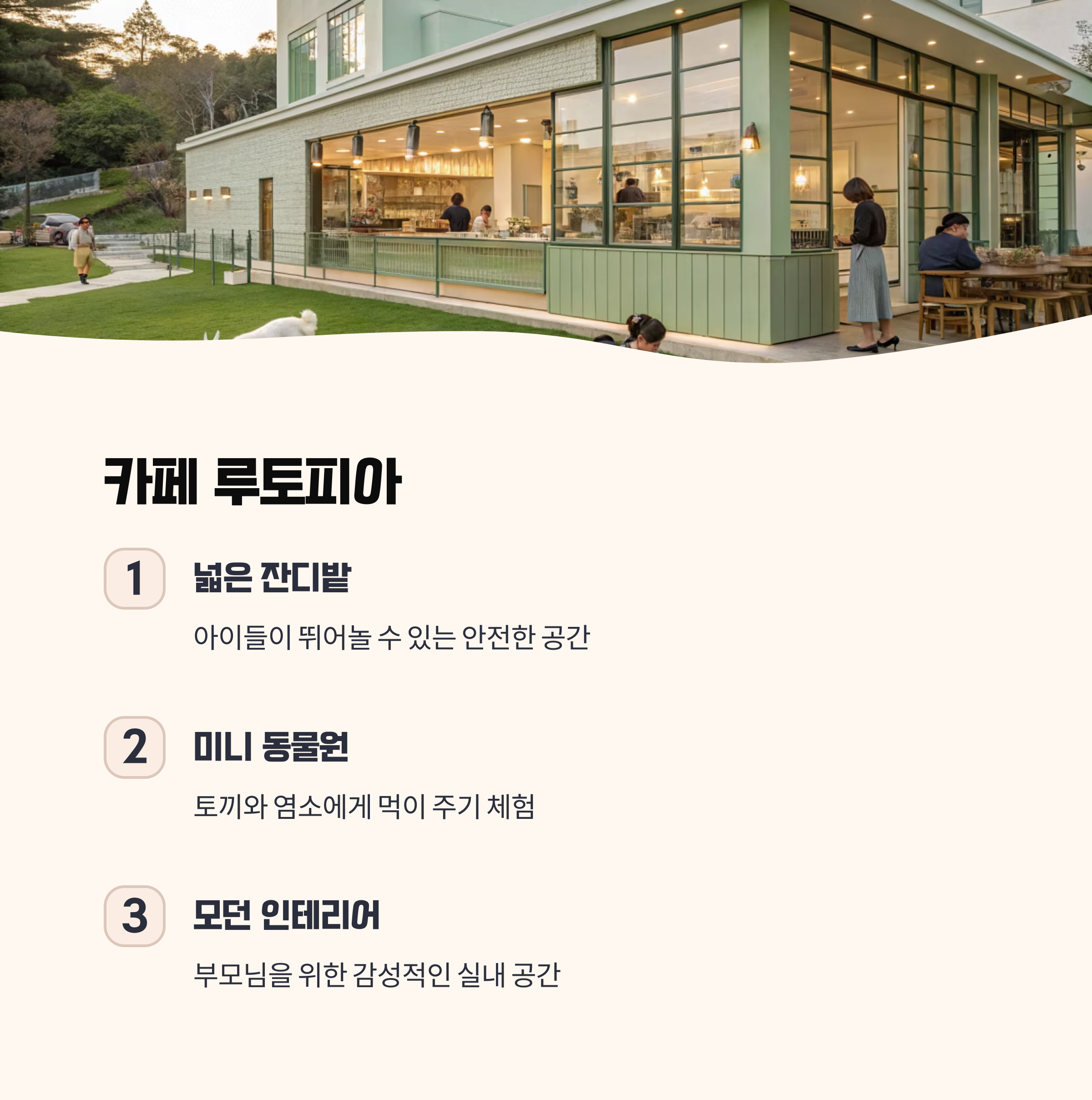 특히 감성적인 인테리어와 어린이를 위한 편의 시설이 잘 갖춰진 카페는 부모에게는 힐링, 아이에게는 즐거움을 선사하죠.