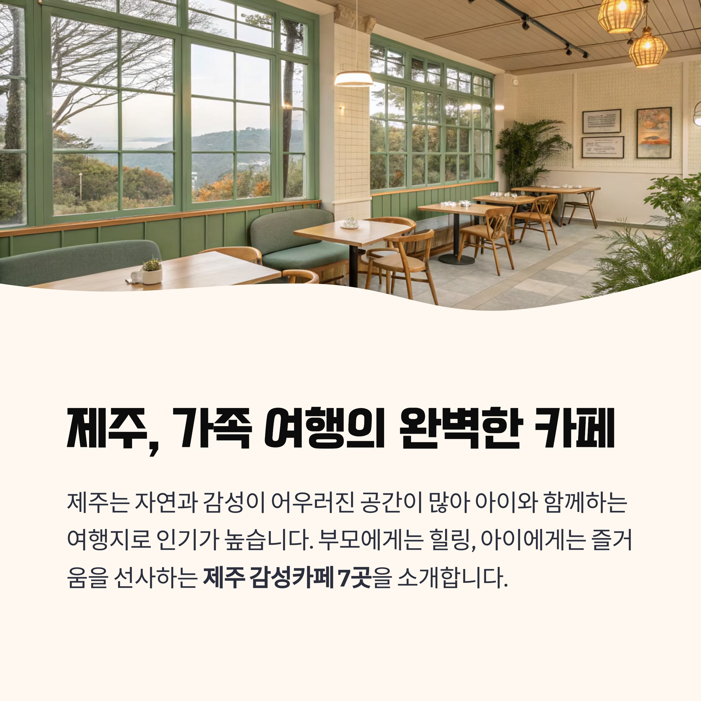 제주는 자연과 감성이 어우러진 공간이 많아 아이와 함께하는 여행지로 인기가 높습니다.