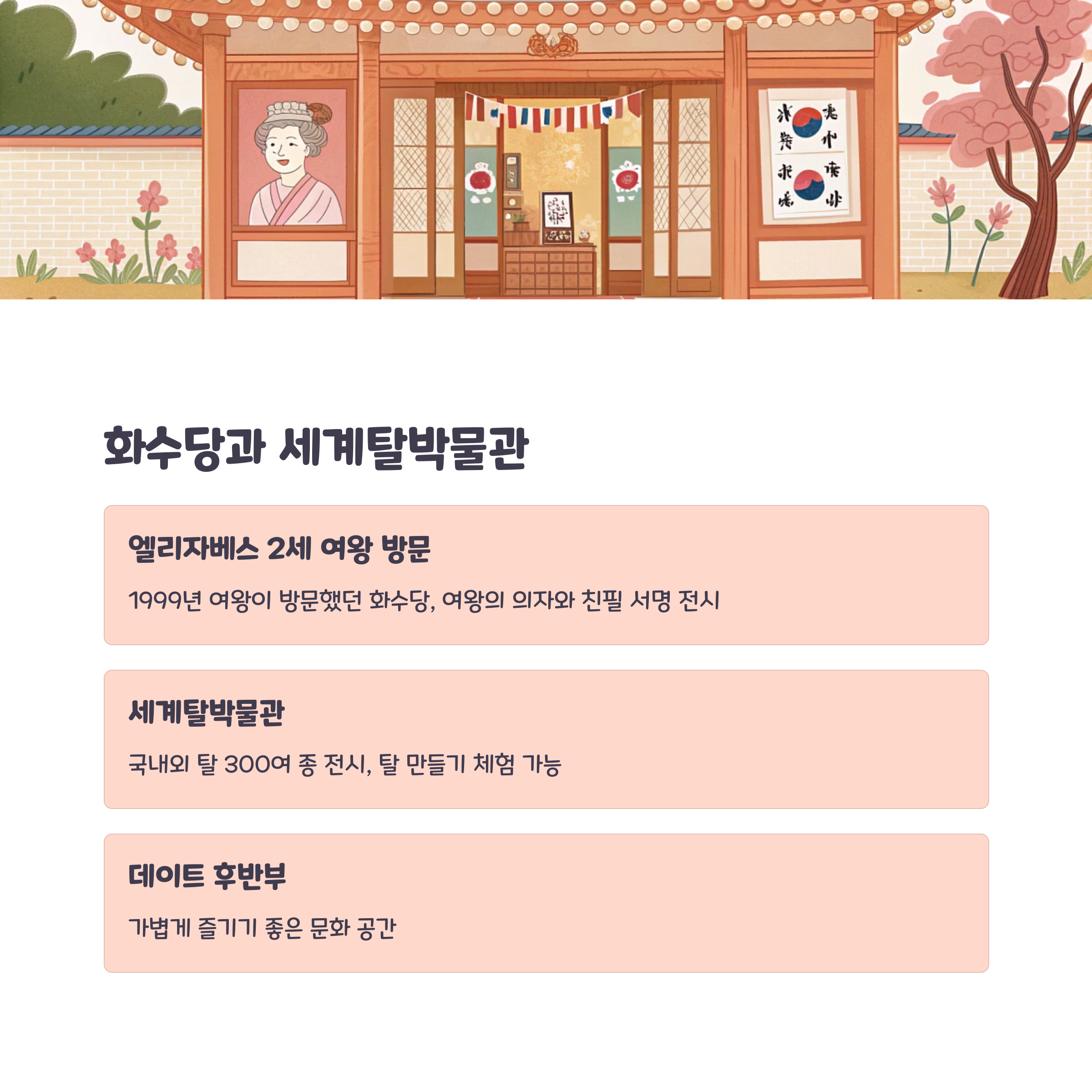영국 여왕이 머문 고택, 화수당과 세계탈박물관