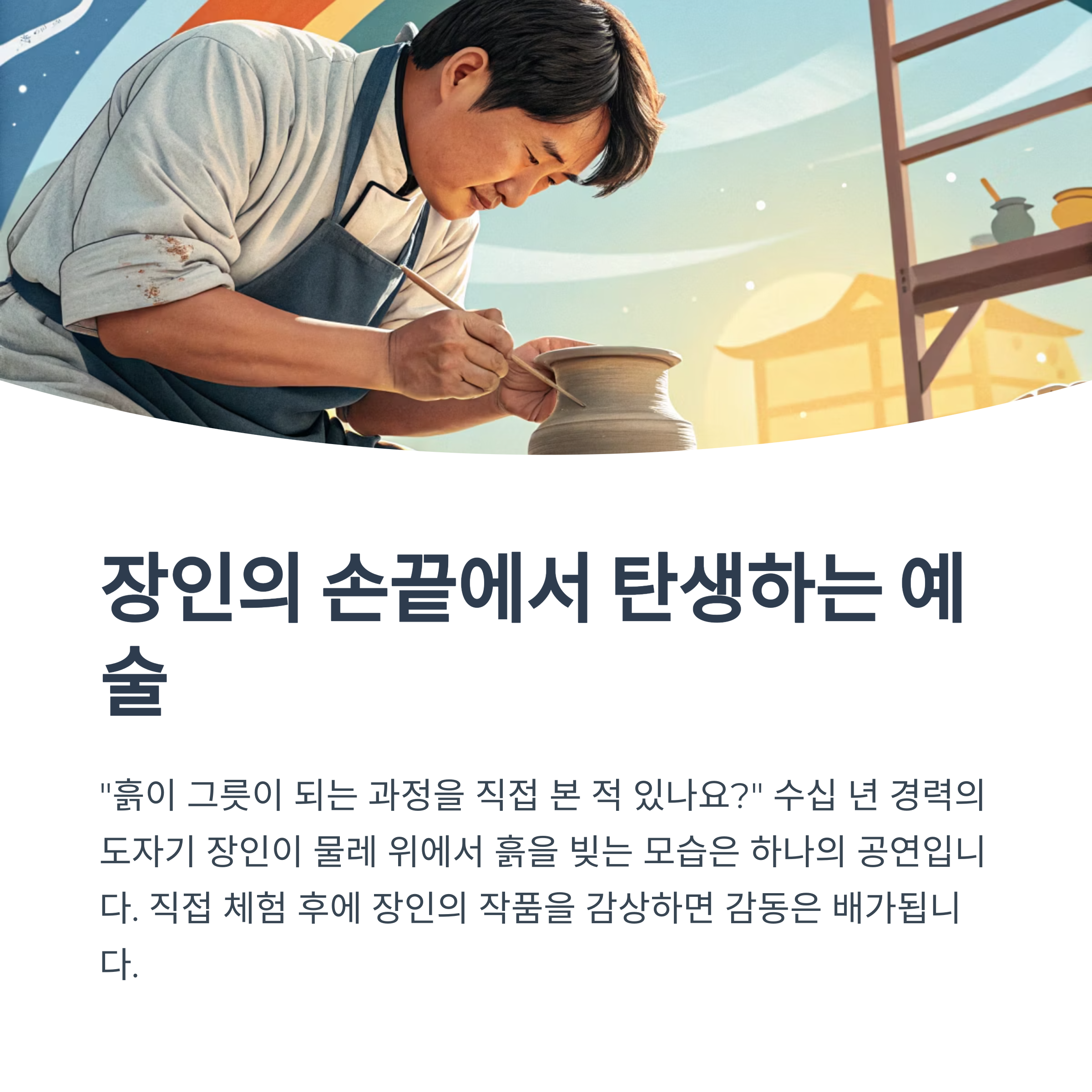 전통 장인과 현대 예술가, 지역 주민과 관람객이 함께 만들어가는 이 행사는