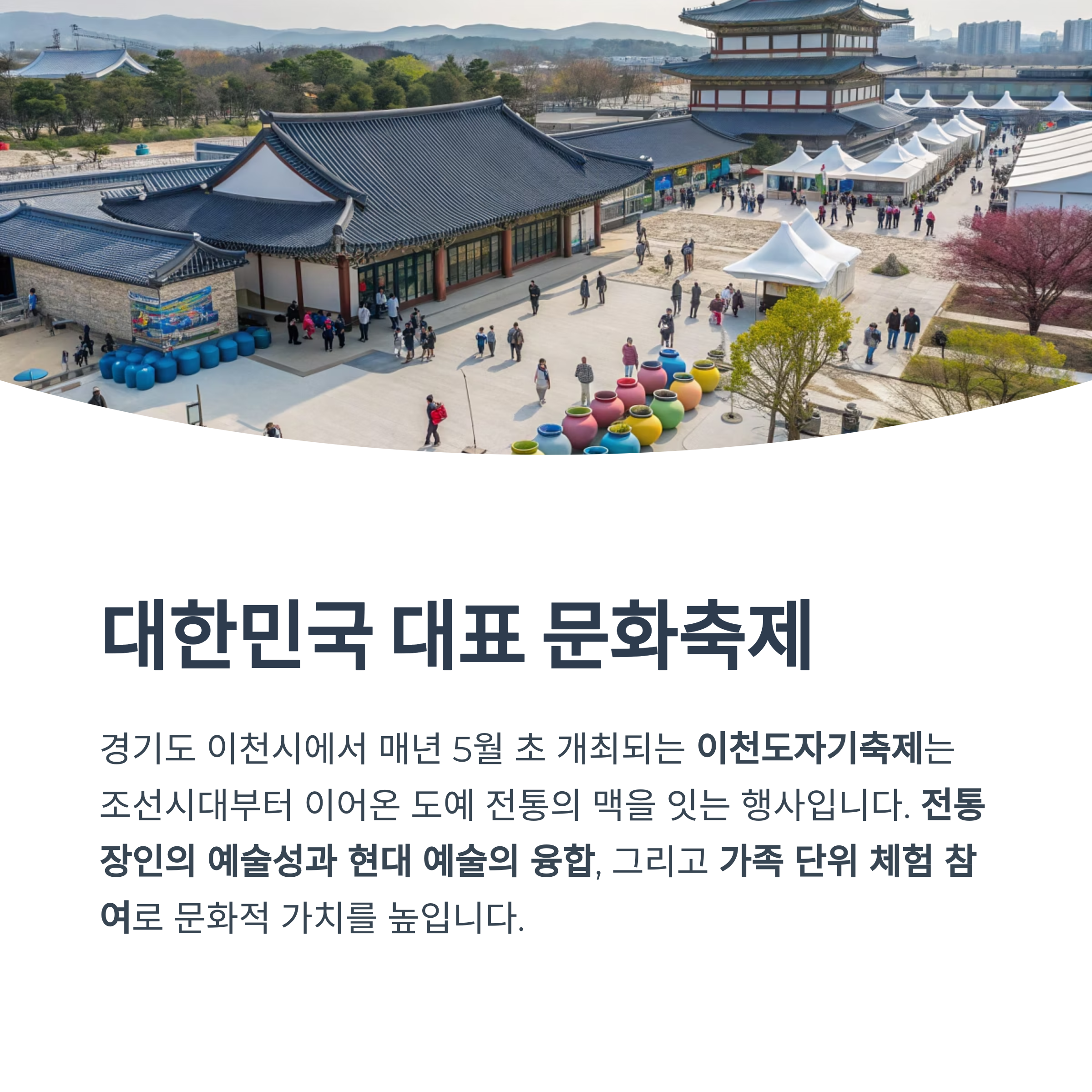 전통 도예의 맥을 잇는 대한민국 대표 문화축제로 자리 잡았습니다.