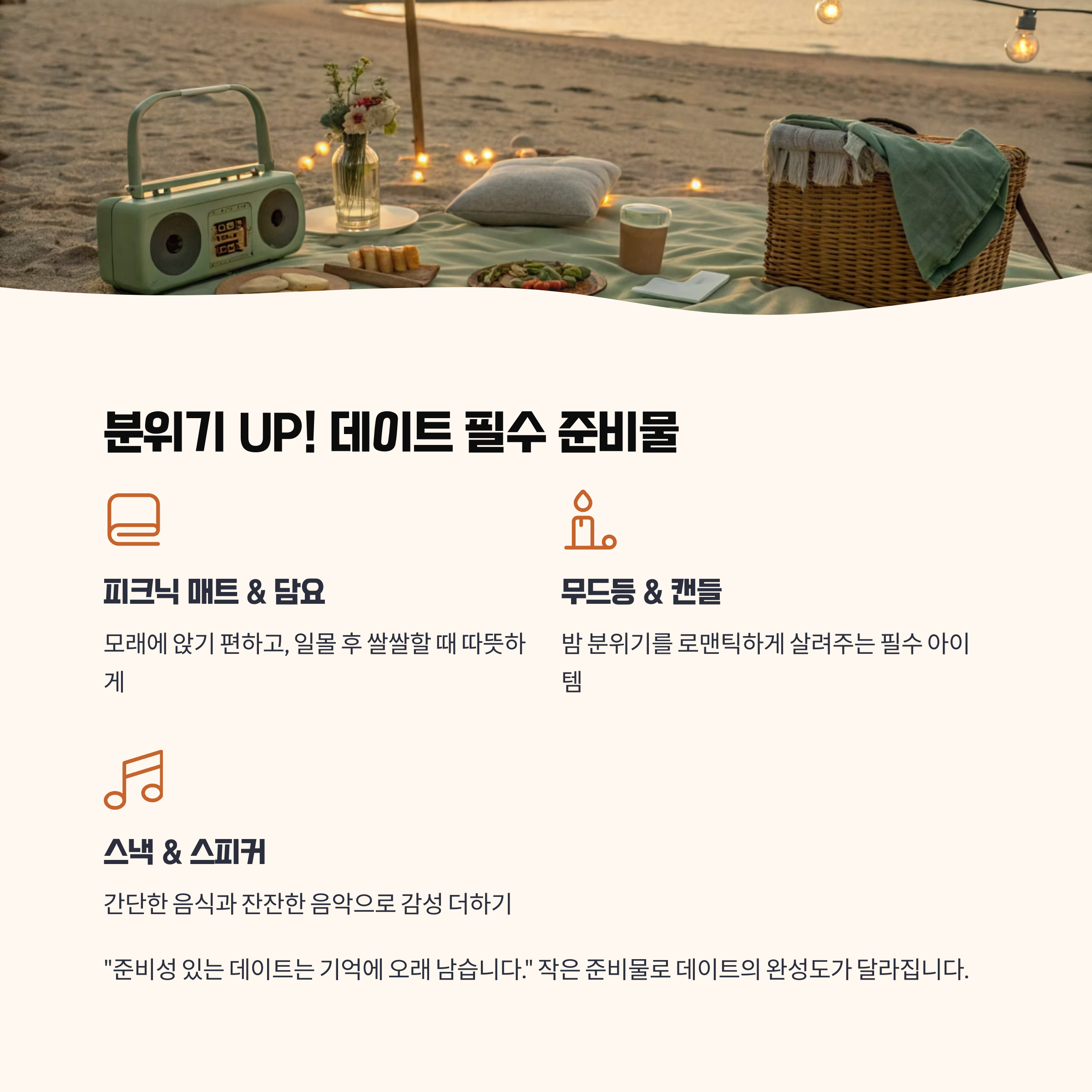 준비물만 잘 챙겨도 데이트 완성도가 달라집니다.