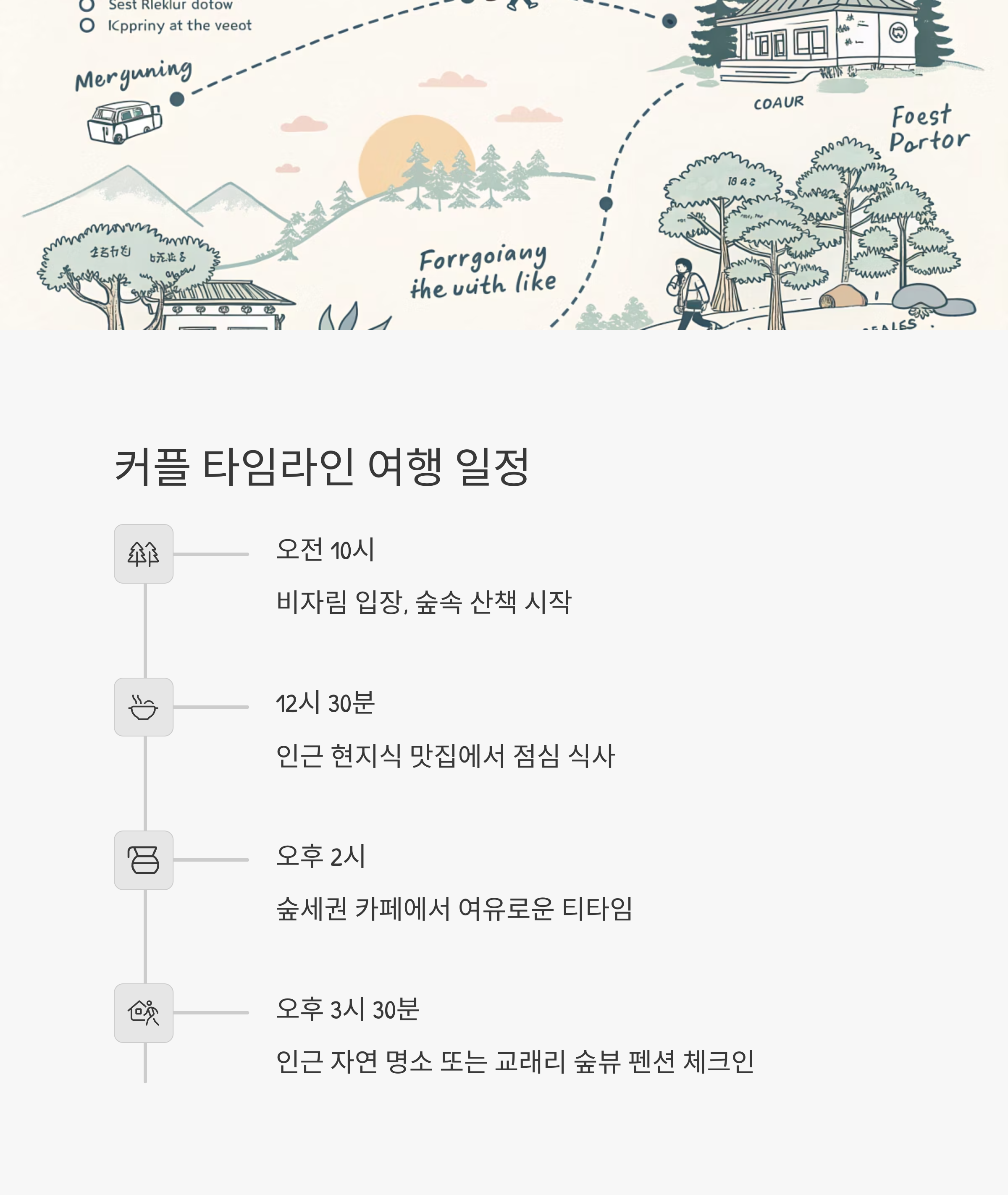 12시 30분: 점심 식사 → 2시: 숲세권 카페