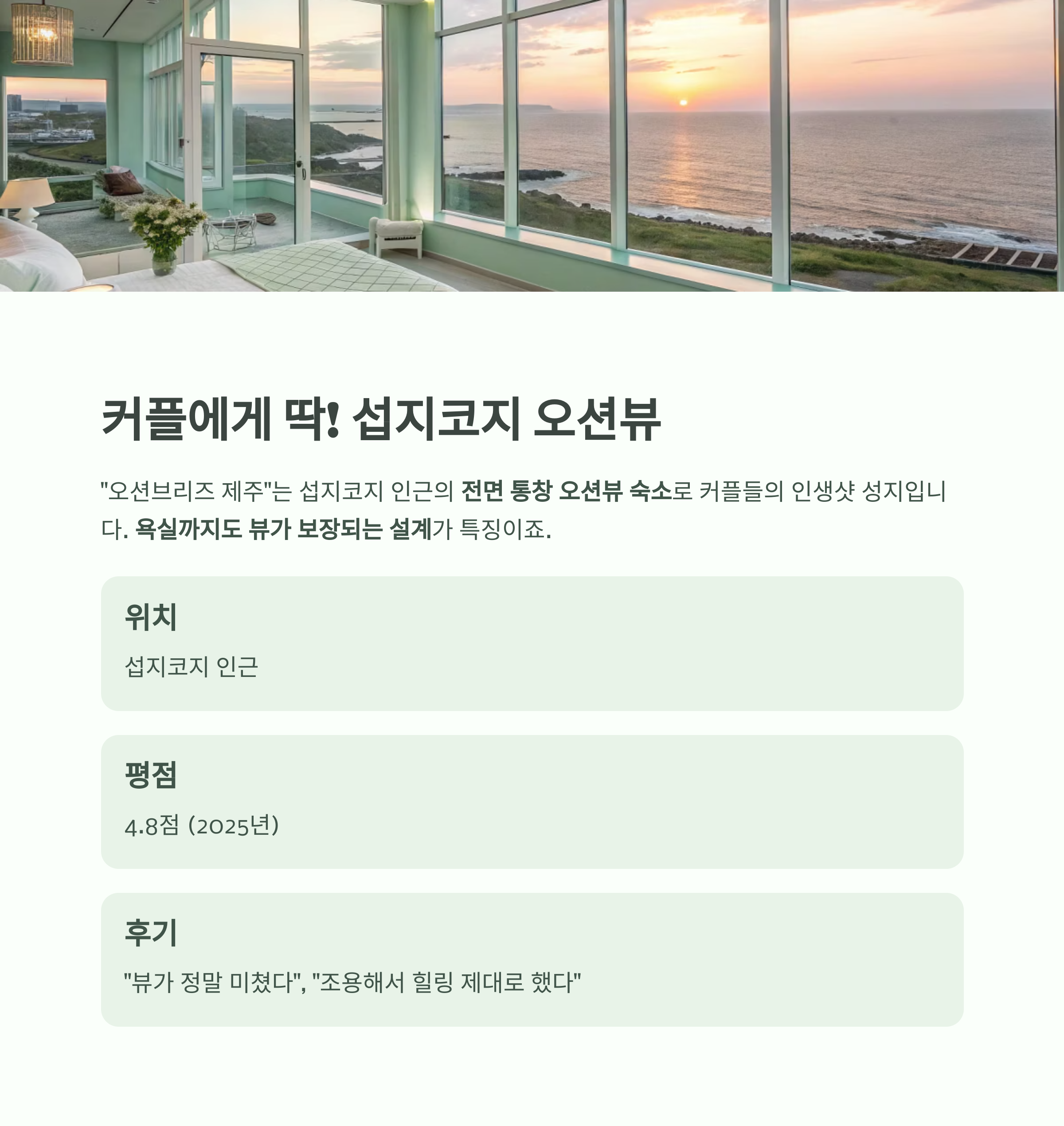 | 오션브리즈 제주 | 섭지코지 | 커플 여행 | 4.8점 |
