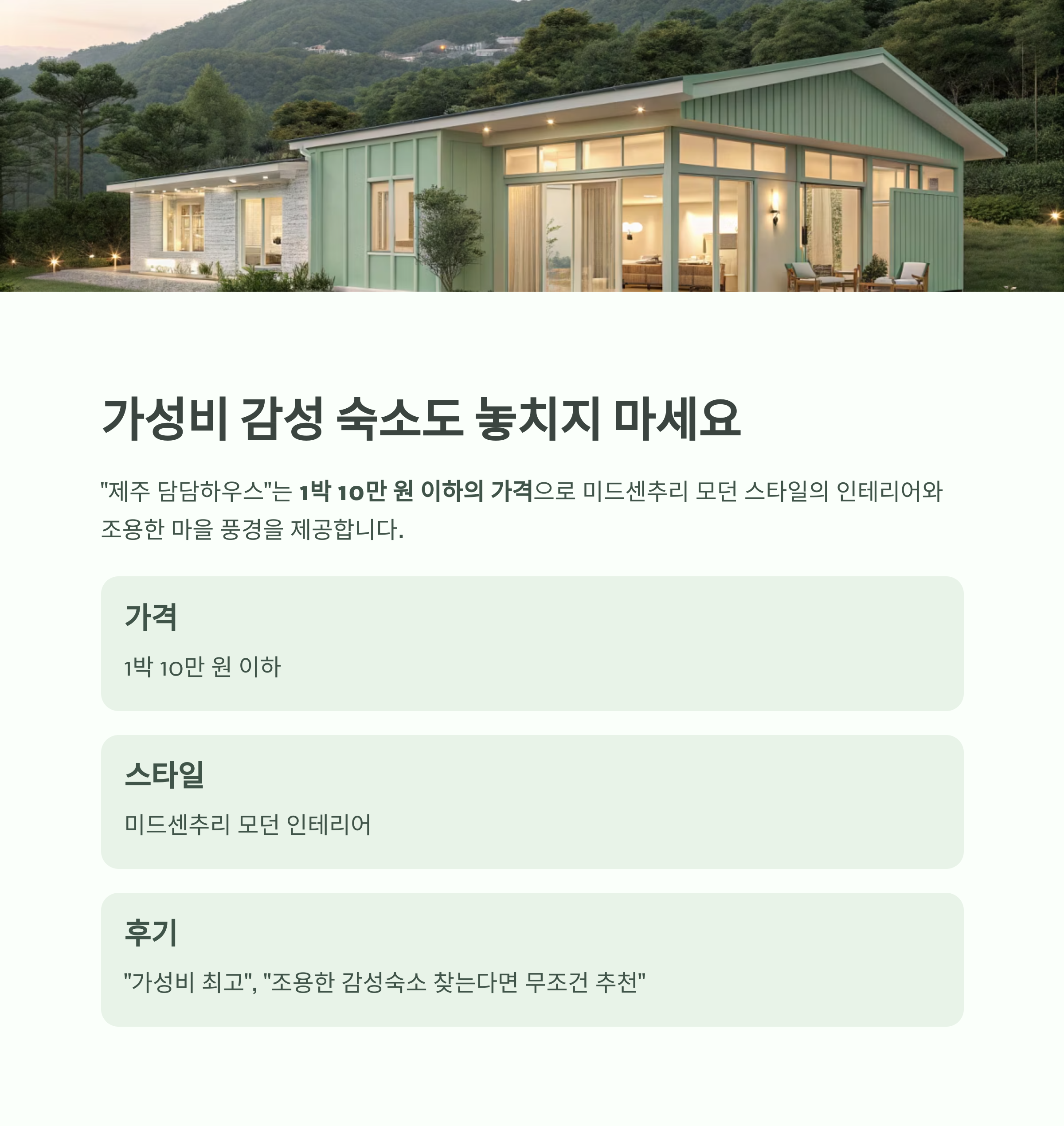 "제주 담담하우스"는 감성을 살리면서도 1박 10만 원 이하의 가격으로