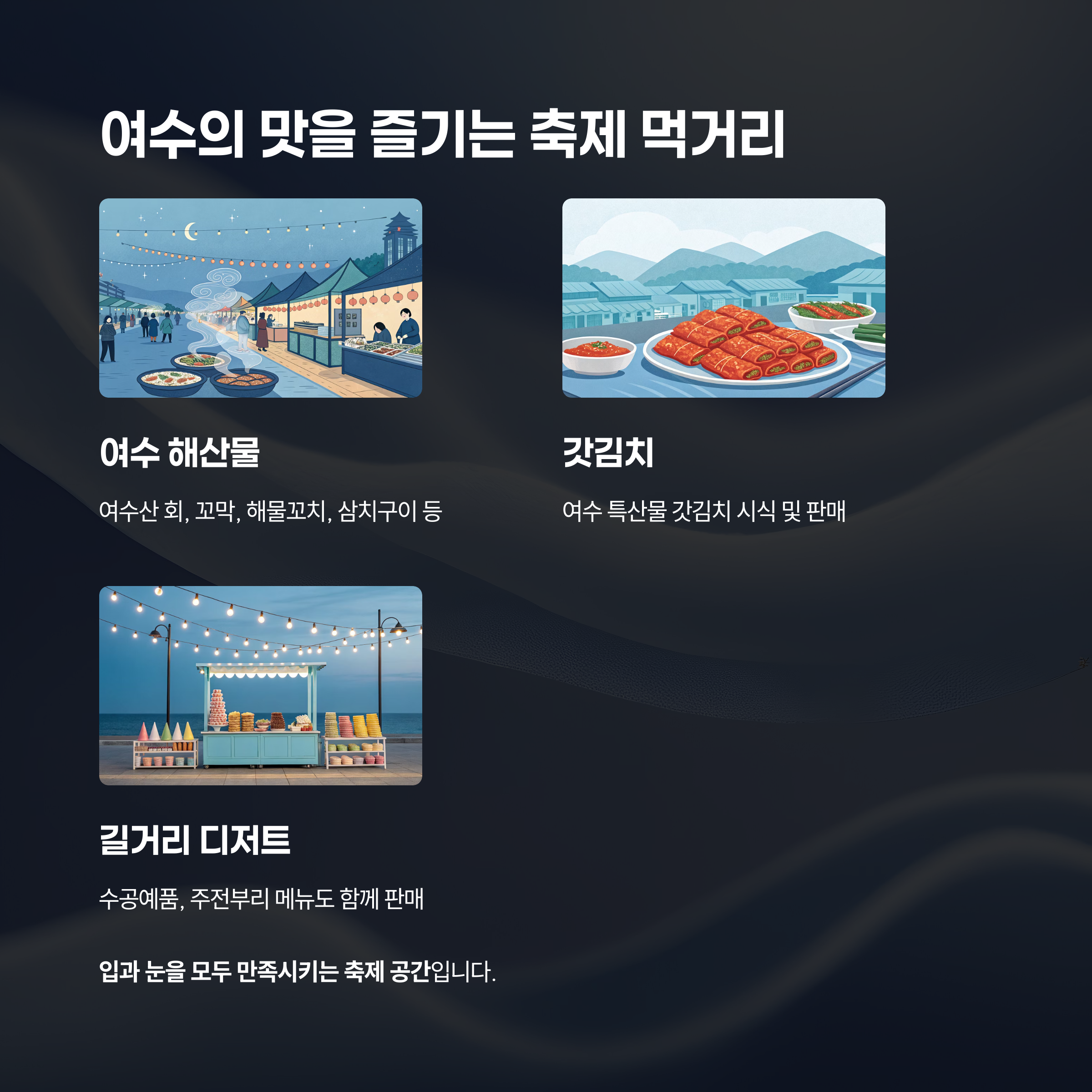 | 야시장 운영 | 여수 특산물 기반 먹거리 부스 |