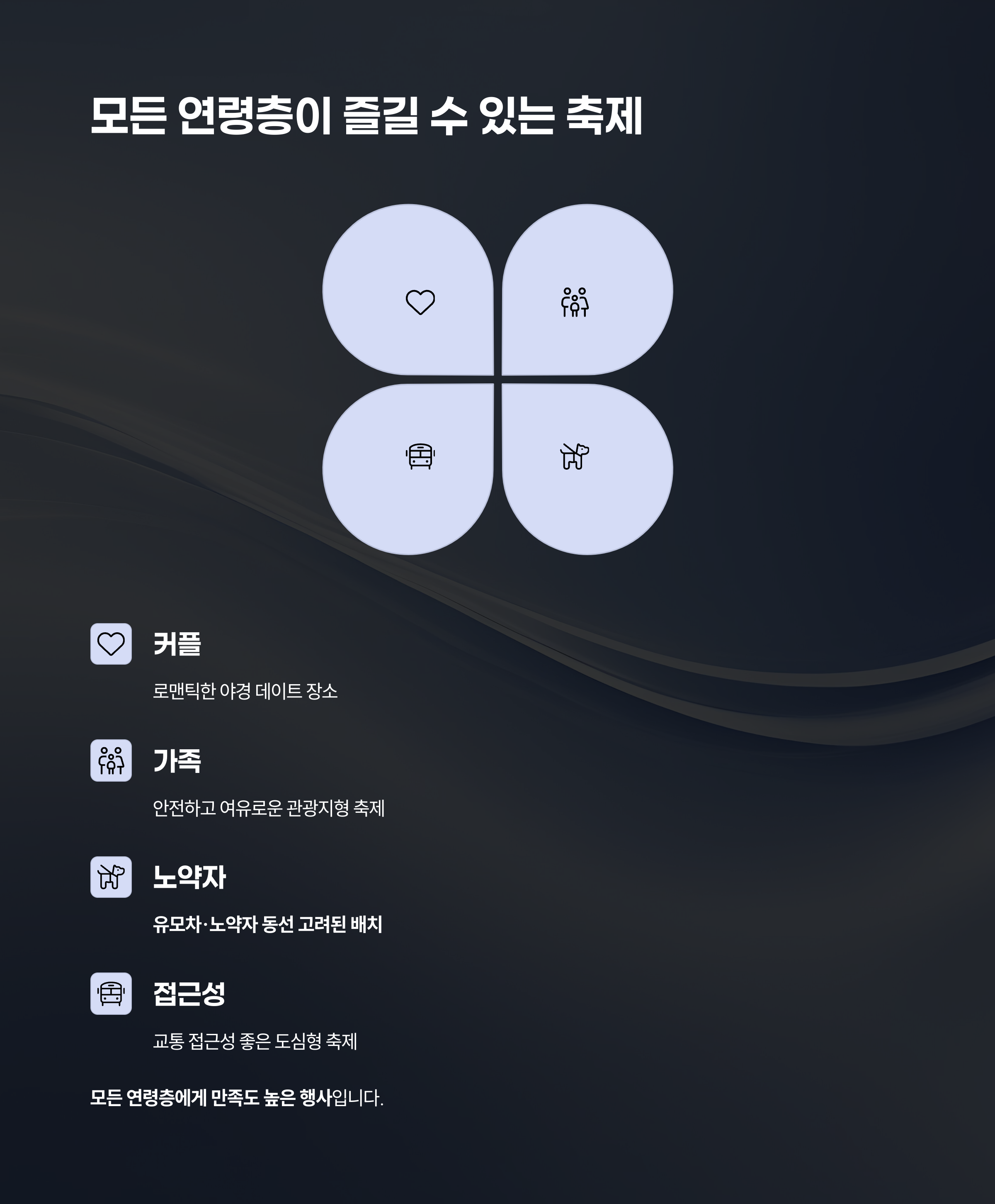 이러한 요소가 모든 연령층에게 만족도 높은 행사로 이어지고 있습니다.