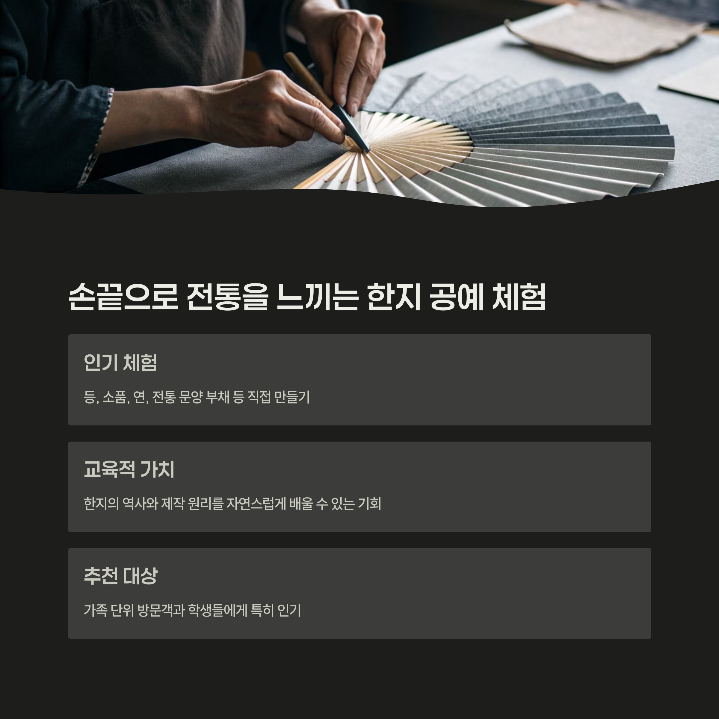 한지의 역사와 제작 원리를 자연스럽게 체험할 수 있습니다.