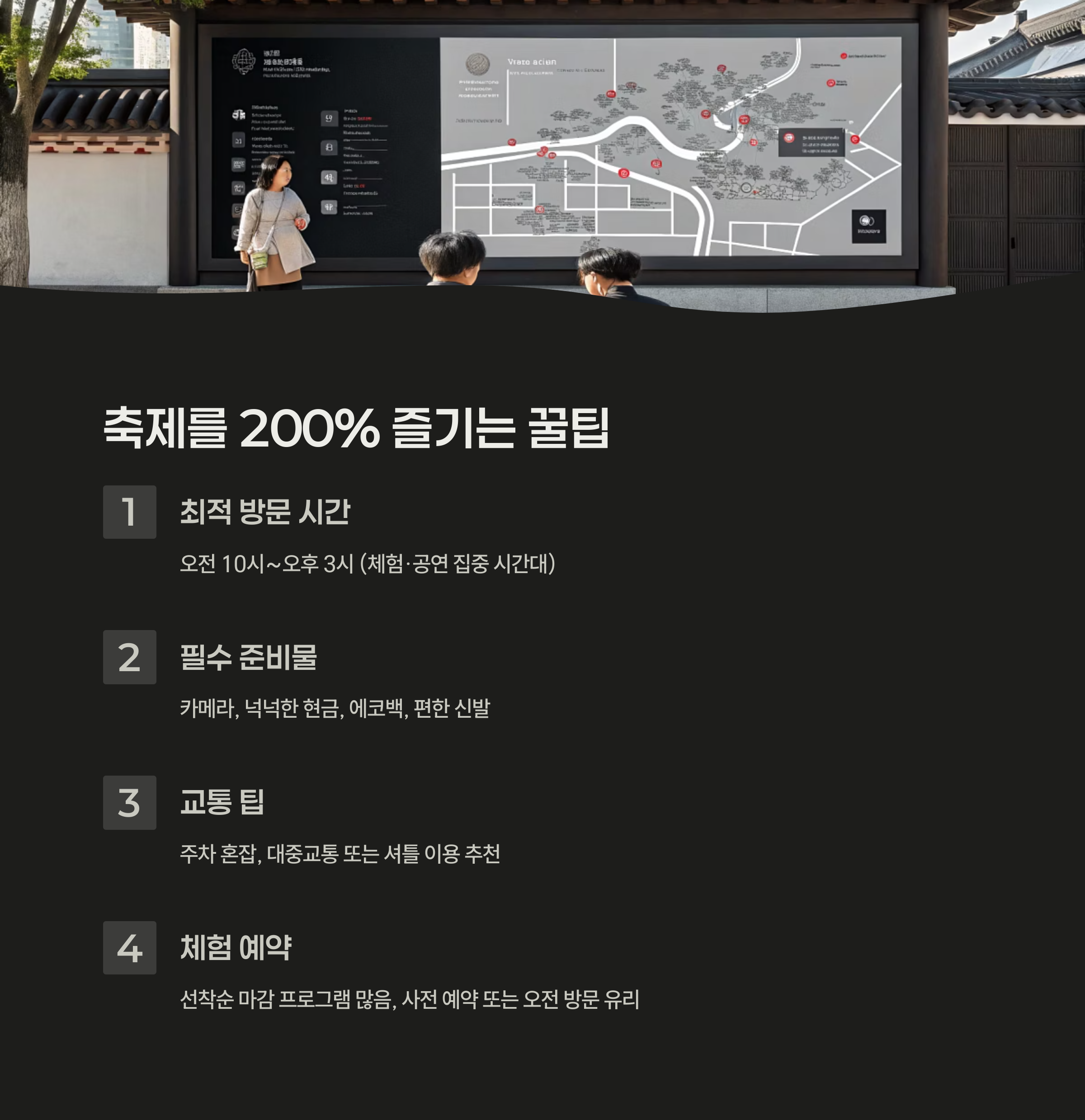 | 추천 방문 시간대 | 오전 10시~오후 3시 (체험·공연 집중 시간대) |