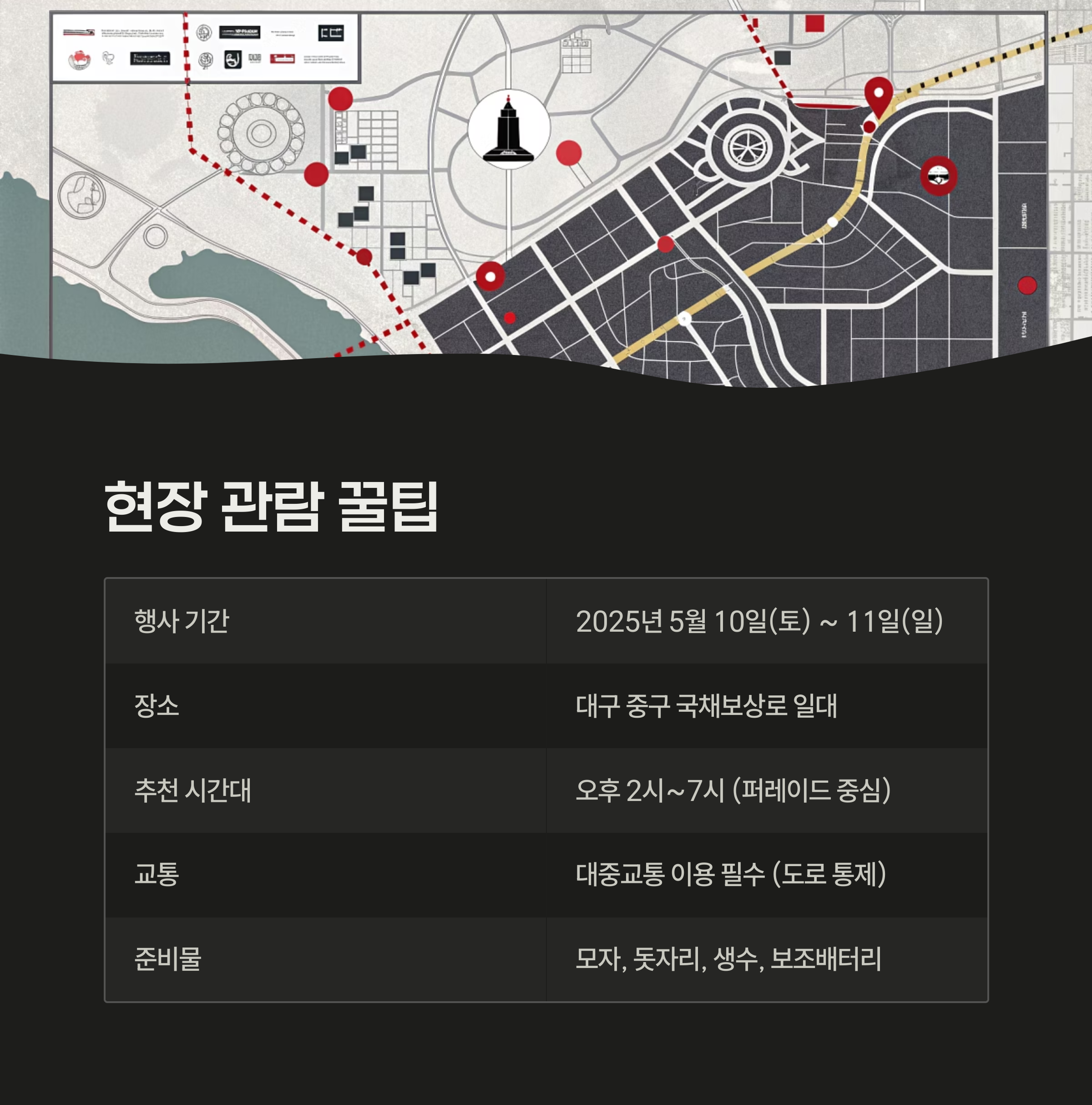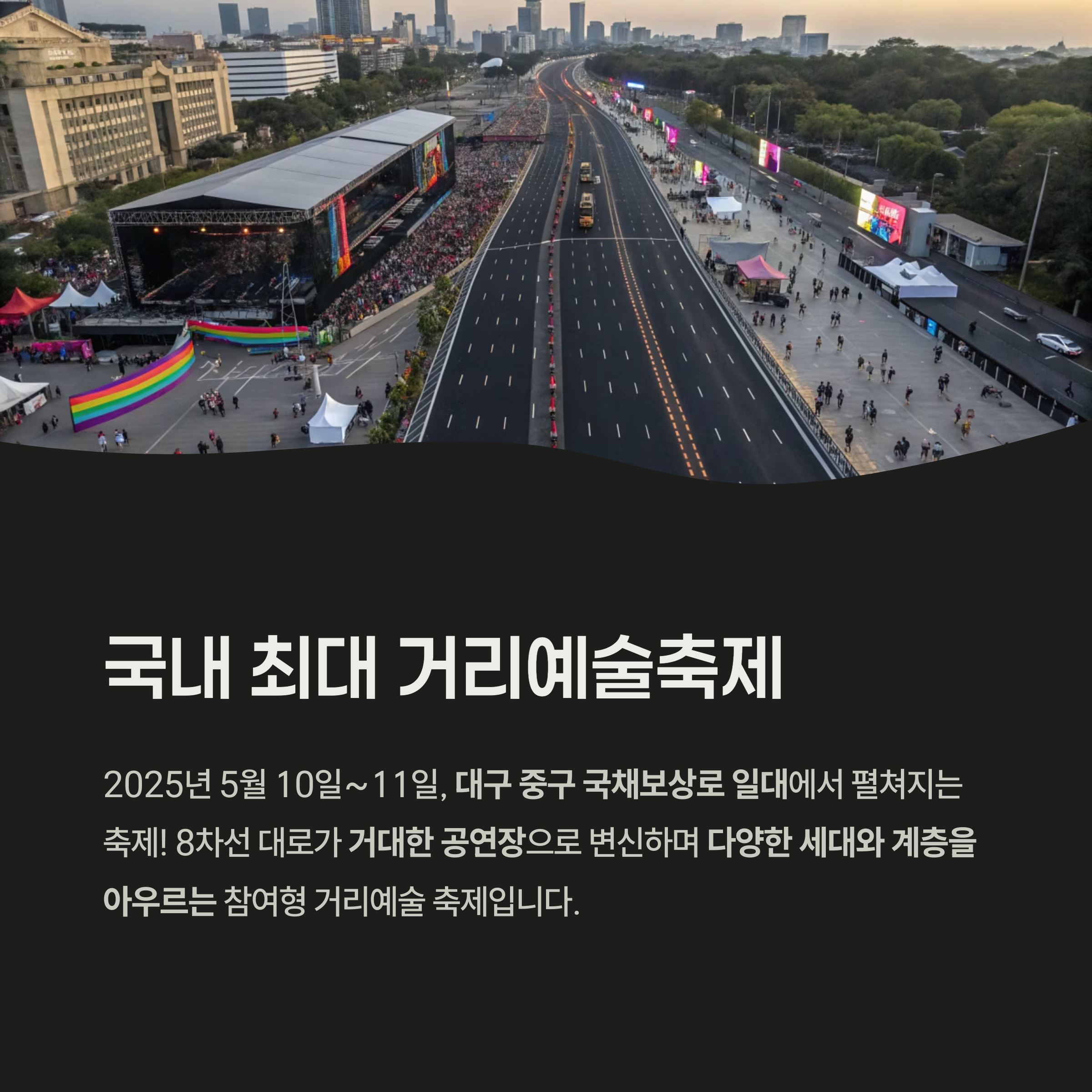 2025년 5월 10일부터 11일까지 대구 중구 국채보상로 일대에서 펼쳐지는 파워풀대구페스티벌은
